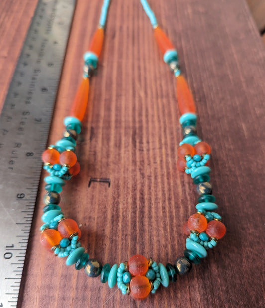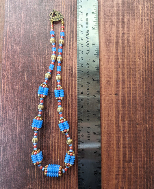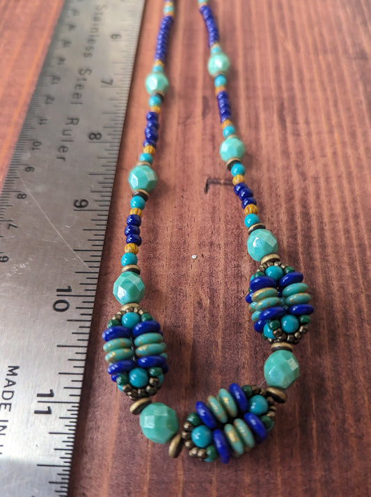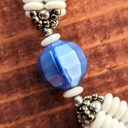 French Blue Woven Bead Necklace with Vintage Silk Glass Beads